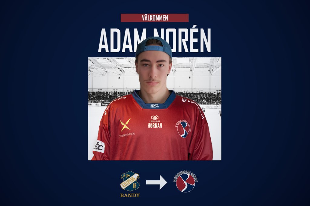 Katrineholm Bandy fortsätter att förstärka truppen inför kommande säsong. Nu står det klart att den 18-årige försvararen Adam Norén ansluter till klubben på ett avtal över 1+1 år.